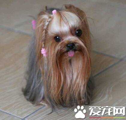 毛发:约克夏犬体毛长度适中,很直(不卷曲)、平滑;细丝质,不似羊毛。头部被毛长长垂下,深黄褐色,头两侧、耳根和口吻部被毛很长且颜色深。头部的褐色不能延伸到颈部,也不能出现乌黑色或暗黑色被毛与其它褐色被毛混合的现象。