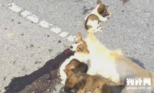 妈妈和哥哥惨死路边,幸存的小奶狗们守候在旁不肯离去