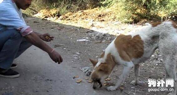 狗狗身形消弱,肚子上瘦得都能看见骨头,可是当义工给它丢了一些吃的,狗狗却吃得很慢,而且没吃几口就停下来了,食欲很差,根本不像平时自己所遇见的那些挨饿的流浪狗。