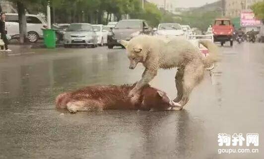 同伴命丧车轮,狗狗当街哀嚎不愿离去,好心酸