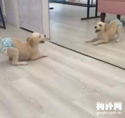 主人你为什么要这么对本汪?狗狗反复地盯着镜子里的自己,完全不能接受自己的这幅尊容。帅气潇洒的自己为什么穿上尿不湿会这么难看,这落差太大,恕本汪拒不接受。
