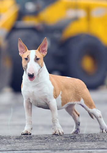 牛头梗,体高:48-56厘米,体重:18-22公斤左右。原产地英国,起源于十九世纪。牛头梗具有圆而有力的身体,厚实的胸颈,背部短直,头部比例略长没有明显鼻梁,吻部强壮有力,耳朵小呈尖型,眼睛呈三角形眼球为黑色或棕色。牛头梗相对人来说性格还是比较温顺、聪明听话,对主人忠心而且服从性强,对儿童特别和善友好,亲切耐心,如照顾得当,可成为忠实的家庭守卫 犬。