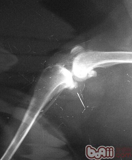 早前有其他宠物医院的宠物医师请求会诊,说有一只七岁的松狮母狗,17kg,运动后出现跛行,左后脚不能负重。一周后到宠物医院门诊,发现膝关节肿胀,拍摄x光片未见骨头明显异常,用药三天消肿但仍不能负重。生化与血常规未见明显异常。